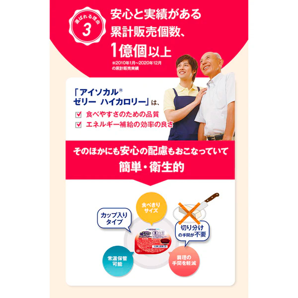 『アイソカル® ゼリー ハイカロリー』は食べやすさ、効率的なカロリー補給等をご評価いただき、 多くの医療・介護現場でご使用いただいています。