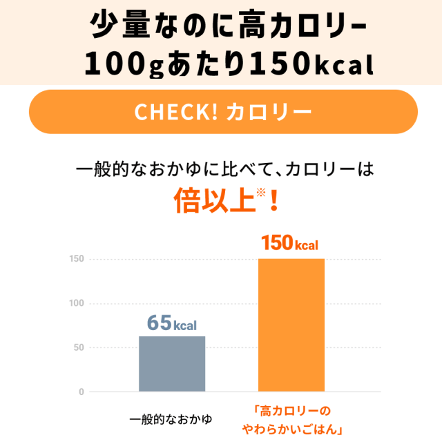 100gとコンパクトな食べきりサイズで、150kcalとたっぷり高カロリー。
