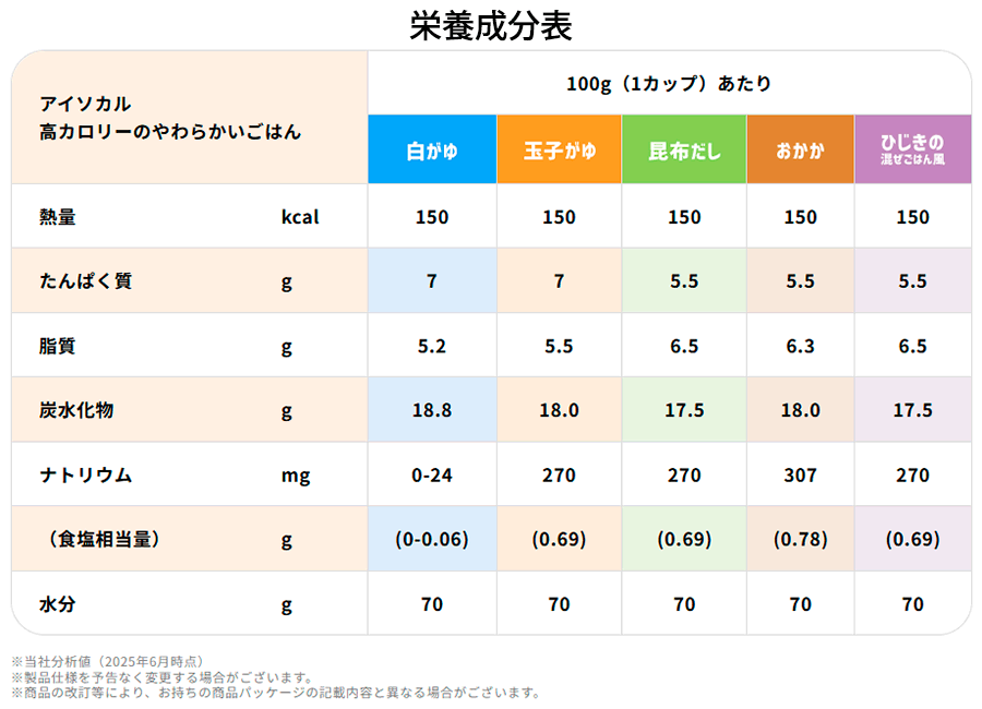 ■「高カロリーのやわらかいごはん」ラインナップ