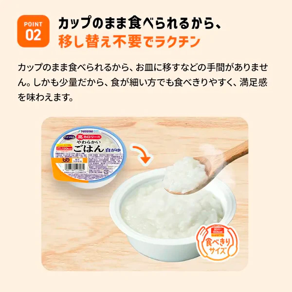 | 注意事項 | 【アレルギー情報】 原材料に含まれるアレルゲン (28品目中): 白がゆ:豚肉、ゼラチン 【使用上・取扱い上の注意】 ● 本品は湿気、冷蔵を避け、常温で保管してください。 ● 開封後はすみやかにご使用ください。 ● プラスチックカップ入りです。 カップに漏れや膨張のあるものは使用しないでください。 ● 開封時に異様な変色、 異臭や凝固のあるものは使用しないでください。 ● 常温、もしくは湯煎 電子レンジで加熱してお召し上がりいただけます。 電子レンジで加熱する時は、ふたを少し開けてください。 電子レンジ加熱時間の目安 (500W / 600W) 約 20秒~60秒 ※加熱時間の目安は、電子レンジの機種、 ワット数等により異なる場合がありますので加減してください。 ・オート加熱不可 ・湯煎の場合、袋に製品を入れて温めてください。 ● 湯煎 電子レンジで加熱後は、容器や中身が熱くなりますのでご注意ください。 ● 食事介助が必要な方に使用される場合は、 介助者が嚥下の様子を見守ってください。 ● 医師・栄養士等の指導にもとづいて使用されることをお勧めします。 ● 低温で保存すると、食感が変化(硬化)したり、風味が劣化したり、 離水 (米等に含まれる水分が分離)することがあります。 そのような場合は、 少し温めてから、かき混ぜてお召し上がりください。 |