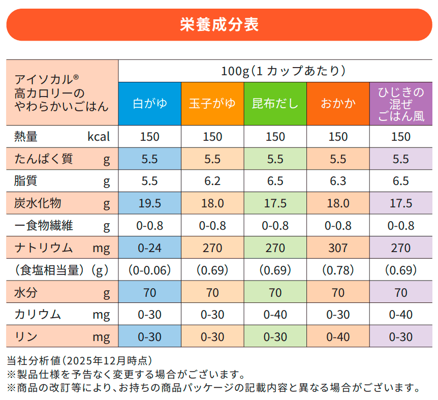 「白がゆ・玉子がゆ」は成分も変更となっております。