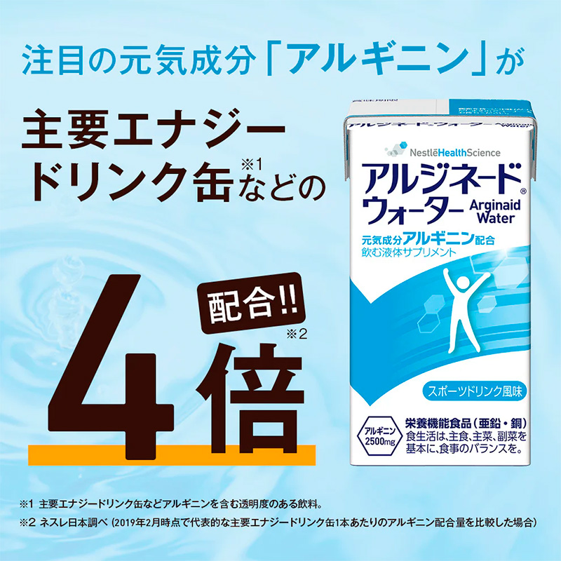 すっきりと飲みやすいスポーツドリンク風味の飲料でアルギニン補給。