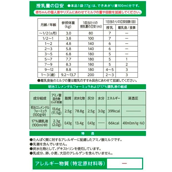 ●たんぱく質に対するアレルギーに配慮したアミノ酸ミルクです。